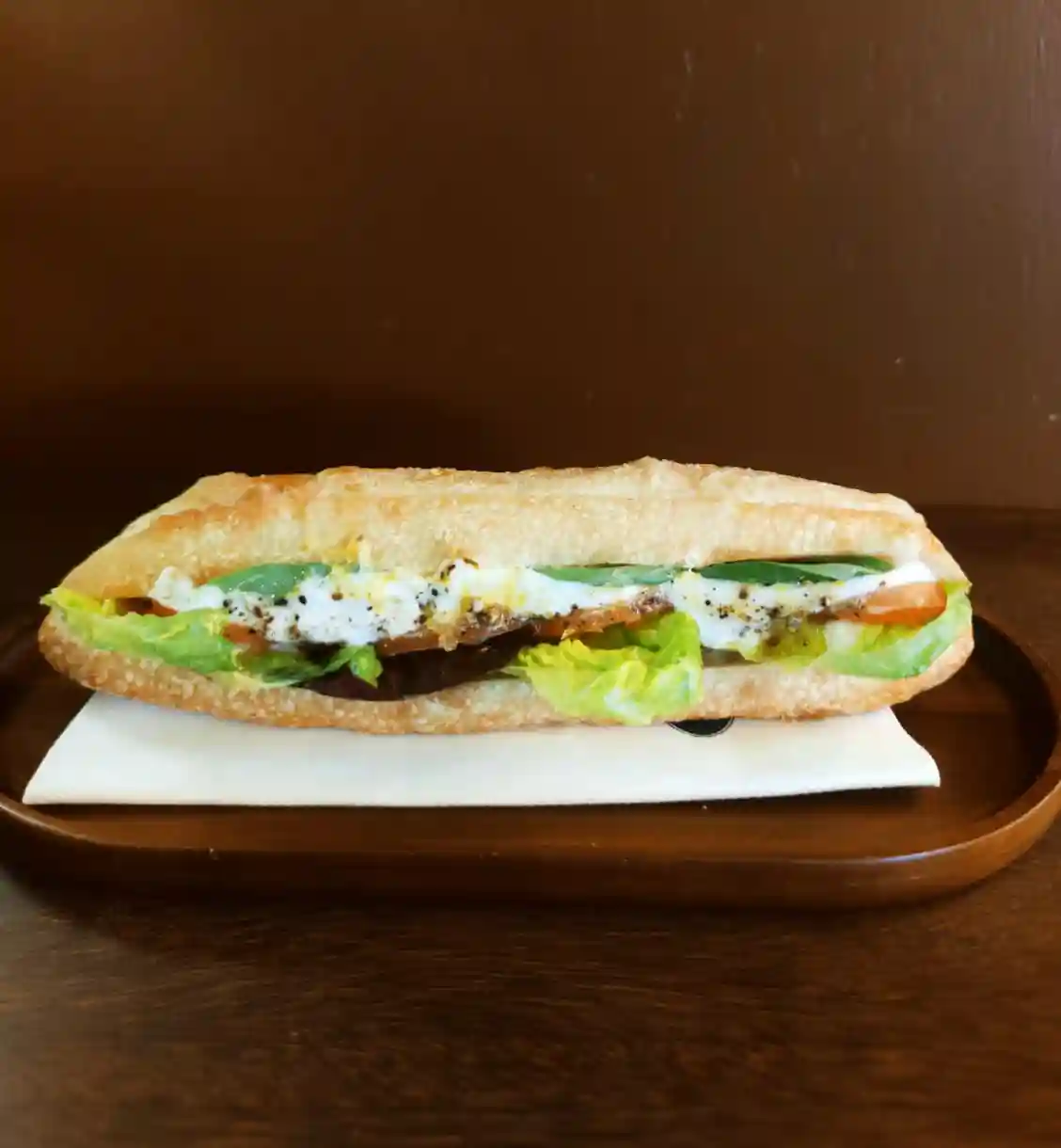 Baguette, burrata, salade, tomate, basilic